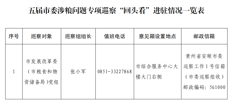 按照省委巡视工作统一部署和市委巡察工作要求,五届市委第七轮巡察授权1个巡察组开展涉粮问题专项巡察“回头看”。11月15日,市委巡察组完成进驻工作。